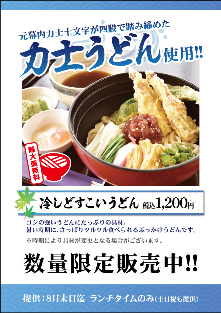 夏季限定★力士うどんを使用した冷たいうどんメニューが登場!!