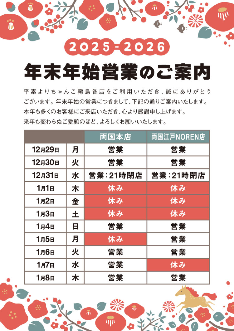 2025-2026 年末年始営業のお知らせ